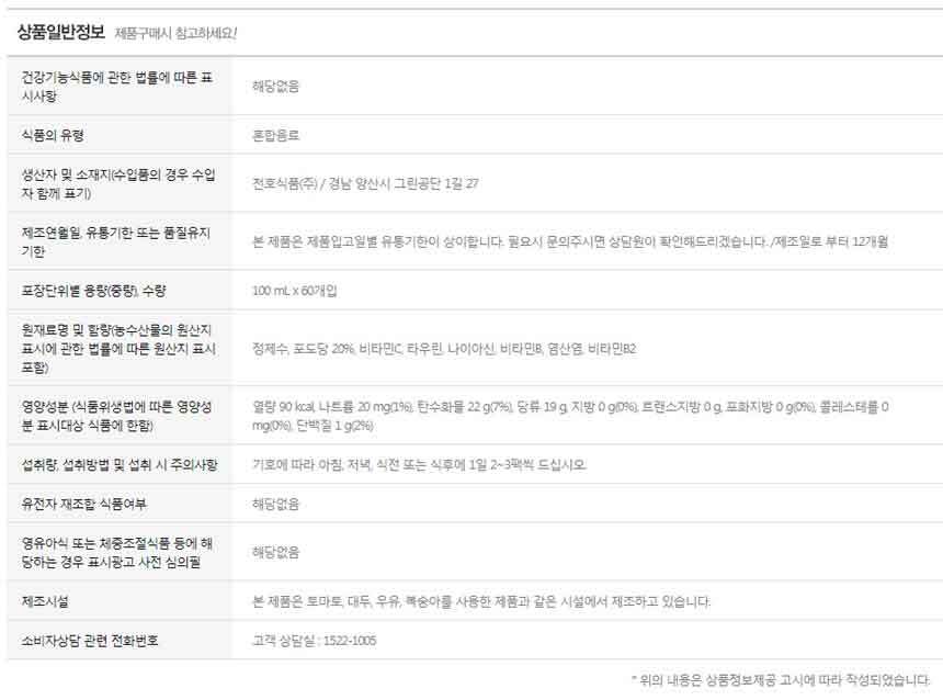 | 원재료 및 함량 | 상세 페이지 참조 |