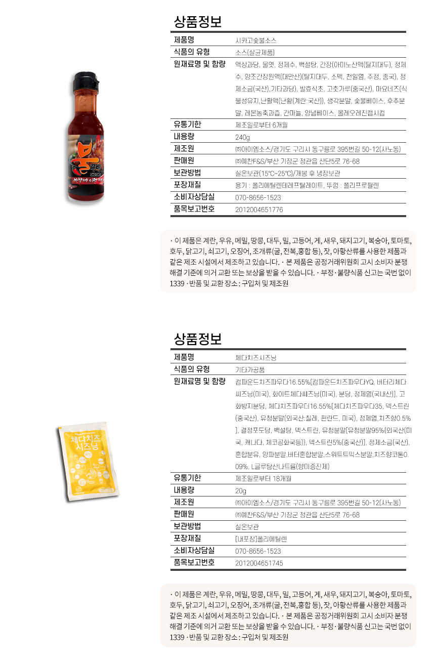 | 제조년월일, 소비기한 또는 품질유지기한 | 상시제조/제조일로부터 2년 |
