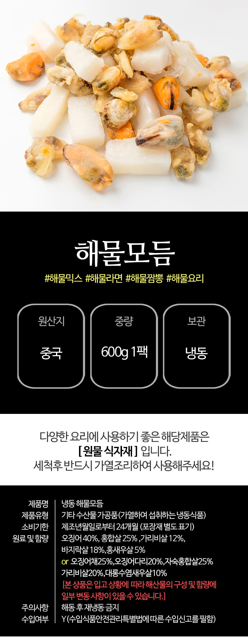 | 상품구성 | 해물모듬(오징어,홍합살,바지락살,새우살) |