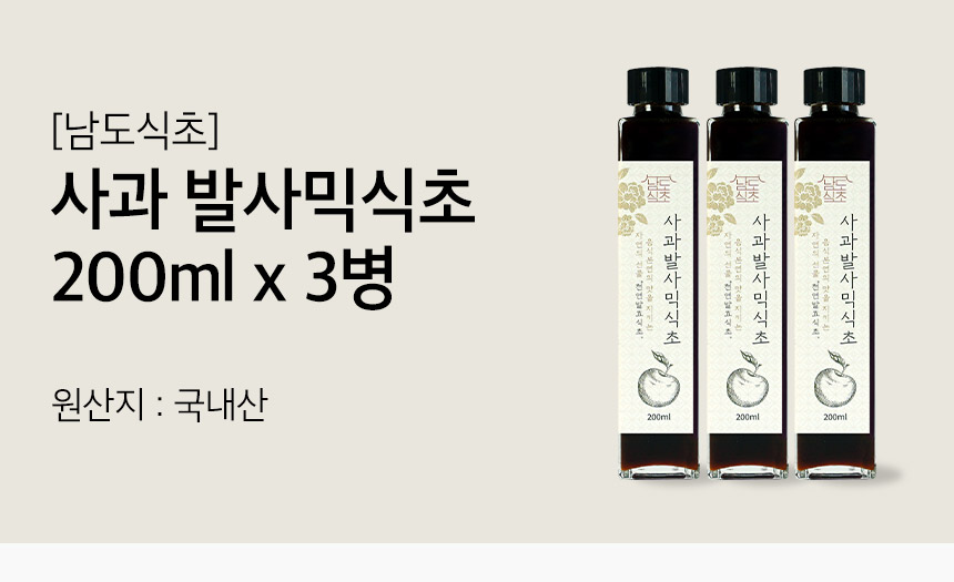 [남도식초] 하화숙 천연발효 사과 발사믹식초 3병x200ml상품상세_동원몰
