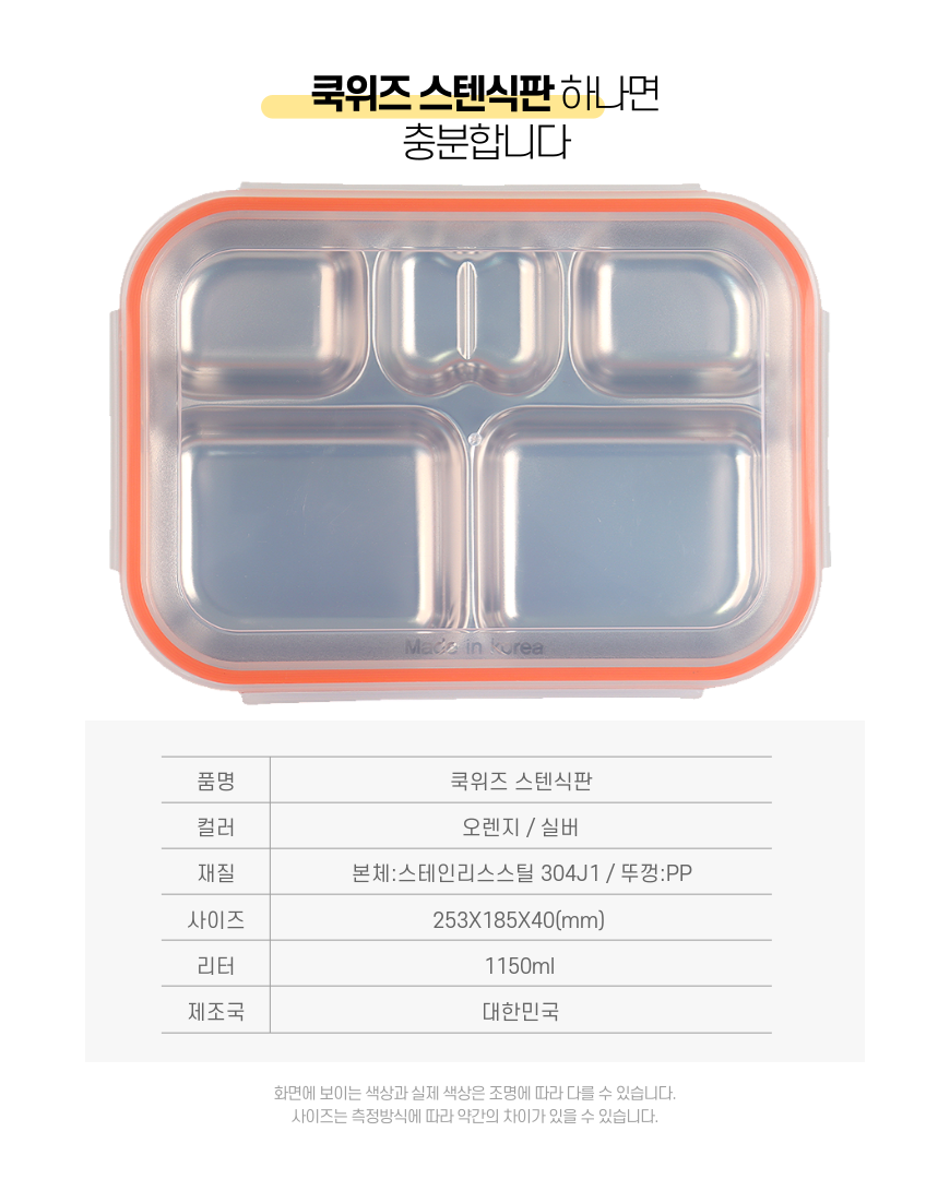 | 품명 및 모델명 | 쿡위즈 스텐식판 5구 유아식판 어린이식판 (오렌지) |