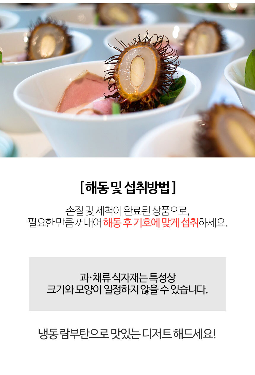 | 식품 등의 표시,광고에 관한 법뮬에 따른 소비자 안전을 위한 주의사항 | 이미 냉동된 바 있으니 해동 후 재냉동시키지 마시기 바랍니다. |