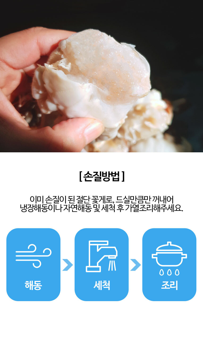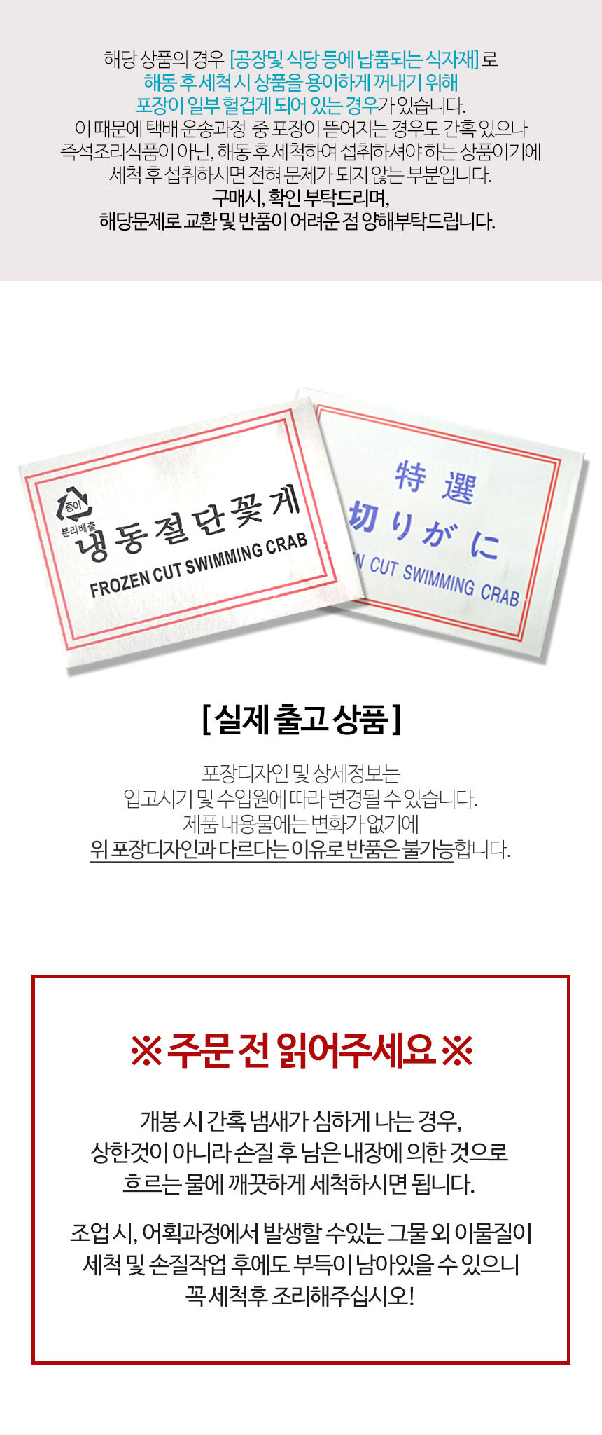 | 식품 등의 표시,광고에 관한 법뮬에 따른 소비자 안전을 위한 주의사항 | 이미 냉동된 바 있으니 해동 후 재냉동시키지 마시기 바랍니다. |