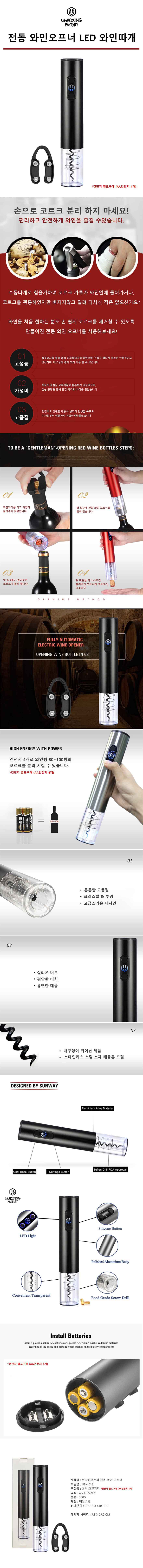 [언박싱팩토리] 전동 와인오프너 LED 와인따개상품상세_동원몰