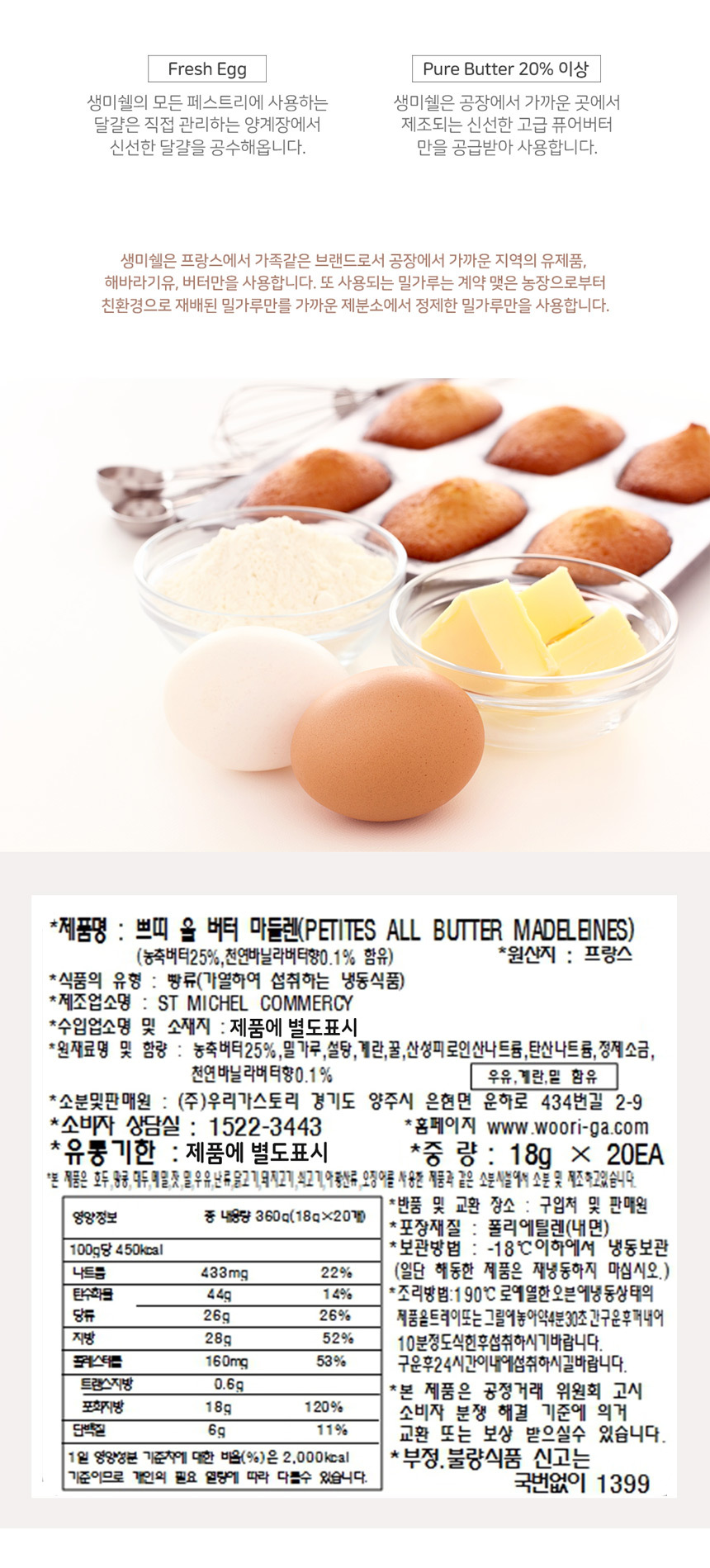 | 포장단위별 내용물의 용량(중량),수량 | 쁘띠버터마들렌 18g 20개 |