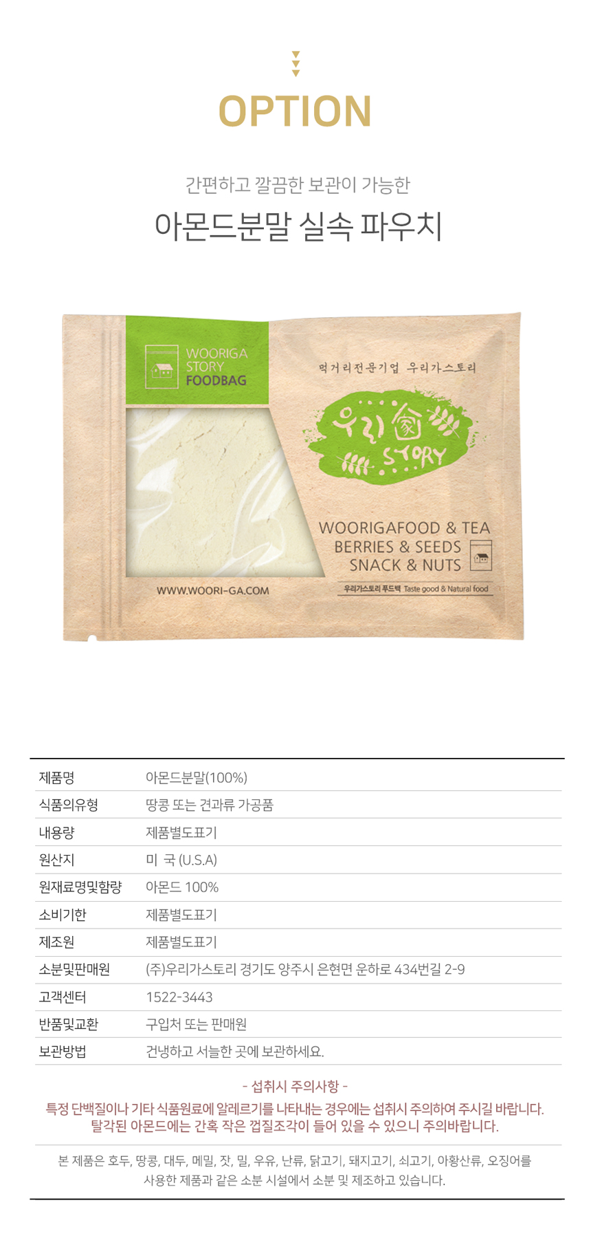 | 포장단위별 내용물의 용량(중량),수량 | 아몬드가루 1kg 1봉 |