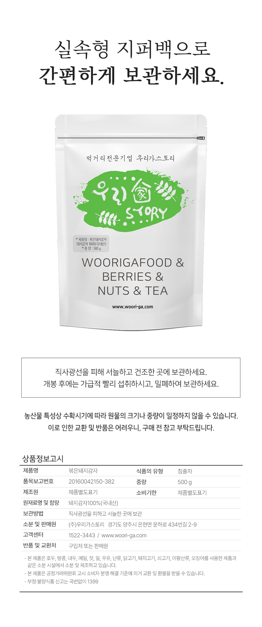 | 포장단위별 내용물의 용량(중량),수량 | 볶은돼지감자차 500g 1봉 |