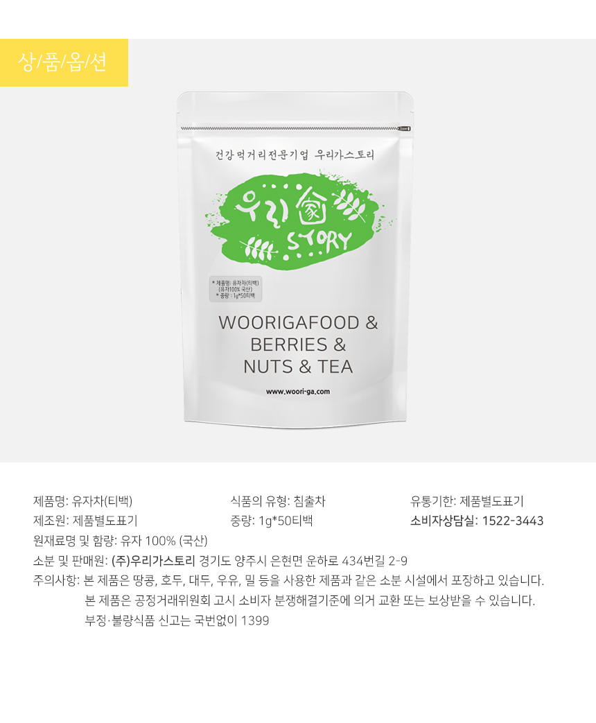 | 품명 | 100% 국산 유자차 50티백 |