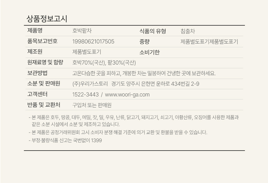 | 품명 | 늙은 호박팥차 2g×100티백 |