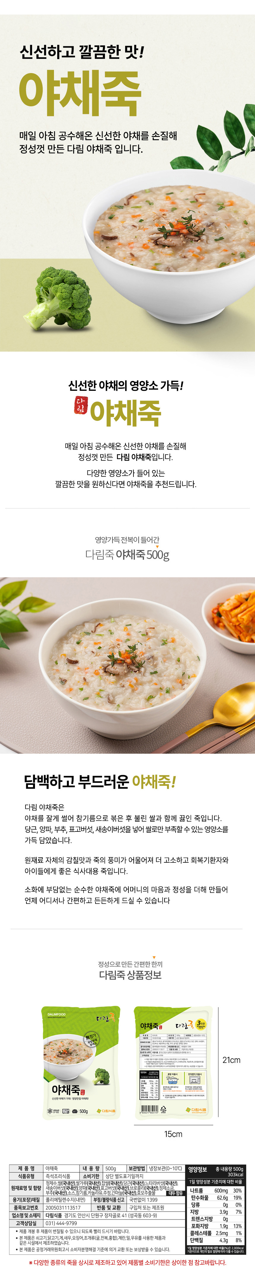 | 품명 | [다림죽] 야채죽 (500gX1인분) |