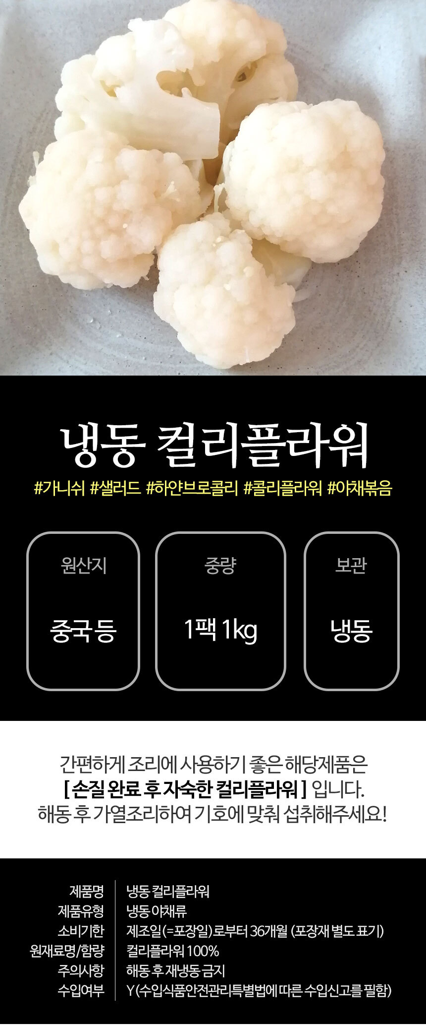 | 품목 또는 명칭 | 냉동컬리플라워 |