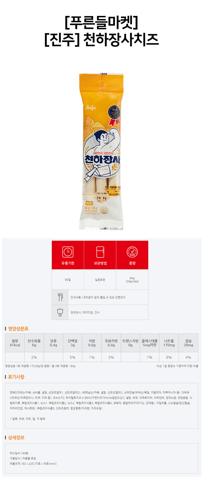 | 품명 | [진주] 천하장사치즈3입(28gx3) |