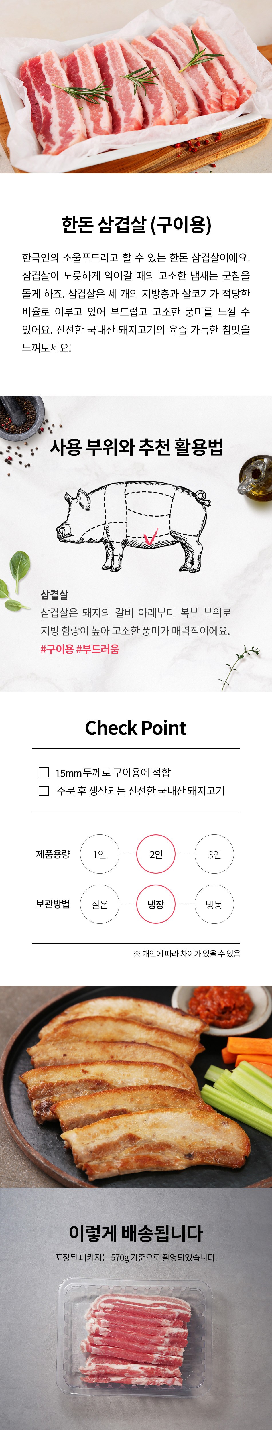 | 상품구성 | 한돈 삼겹살 구이용 380g 두께 15mm |