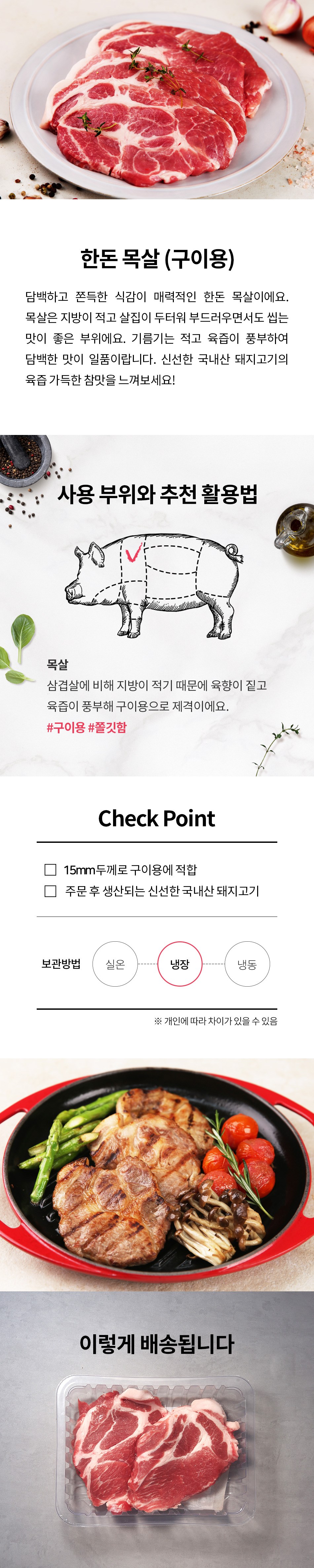 | 포장단위별 내용물의 용량(중량),수량,크기 | [동원] 금천한돈 목살 구이용 570g (냉장) 두께 15mm |