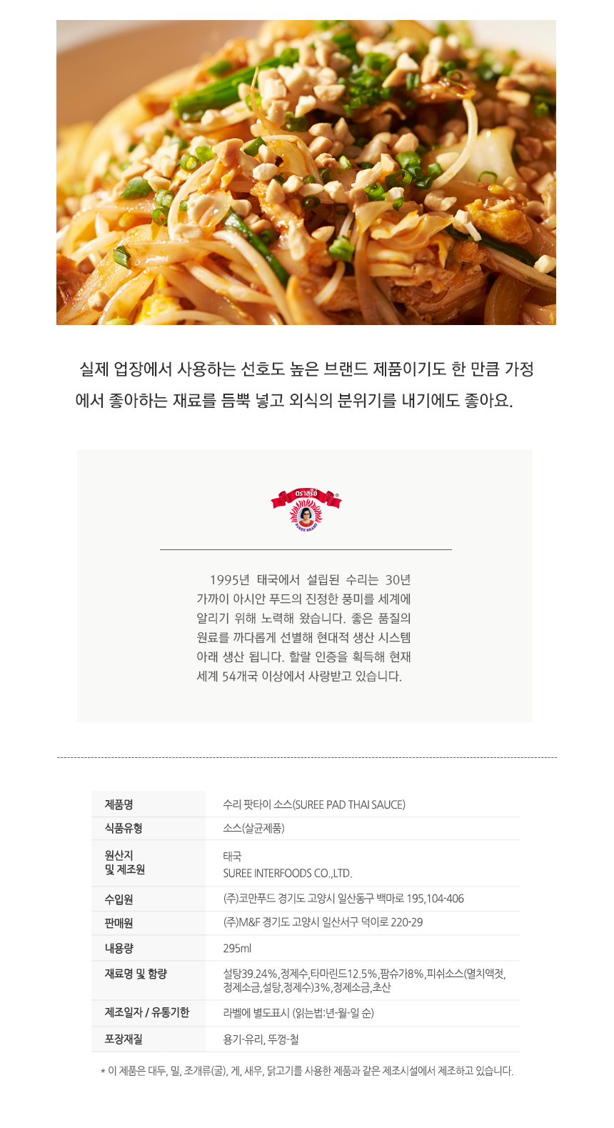 | 생산자 및 소재지/수입자 | Suree Interfoods co.,ltd / 태국 |