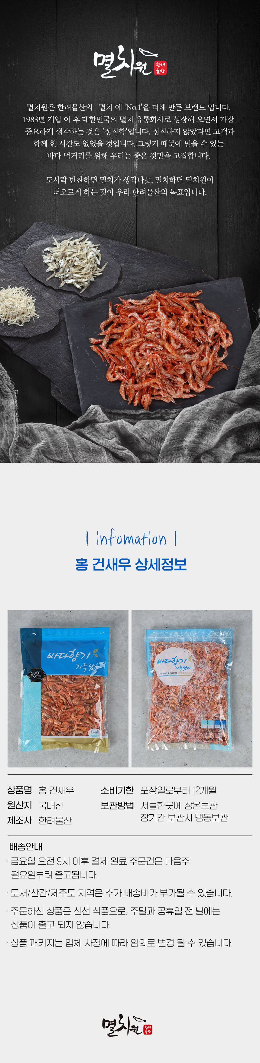 | 포장단위별 내용물의 용량(중량),수량,크기 | 홍 건새우 500g,중량으로 표기하는 상품은 크기를 기재할 수 없음 |