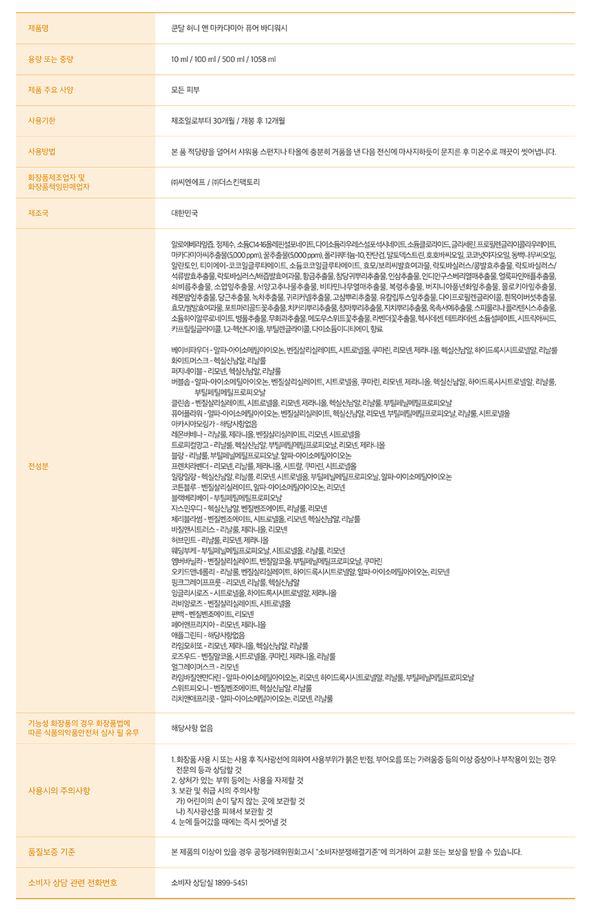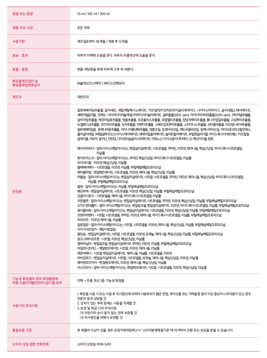 | 제품에 사용된 화학물질 명칭(주요물질, 보존제 등 관련 고시에 따른 표시의무 화학물질에 한함) | 상품페이지 참조 |