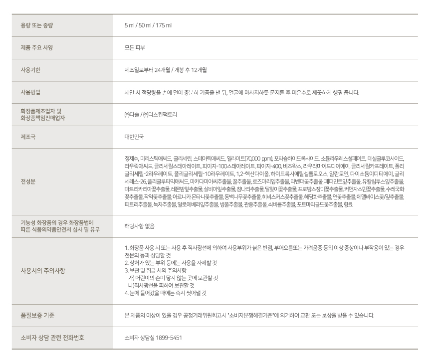 | 중량, 용량, 매수 | 50ml / 100ml |