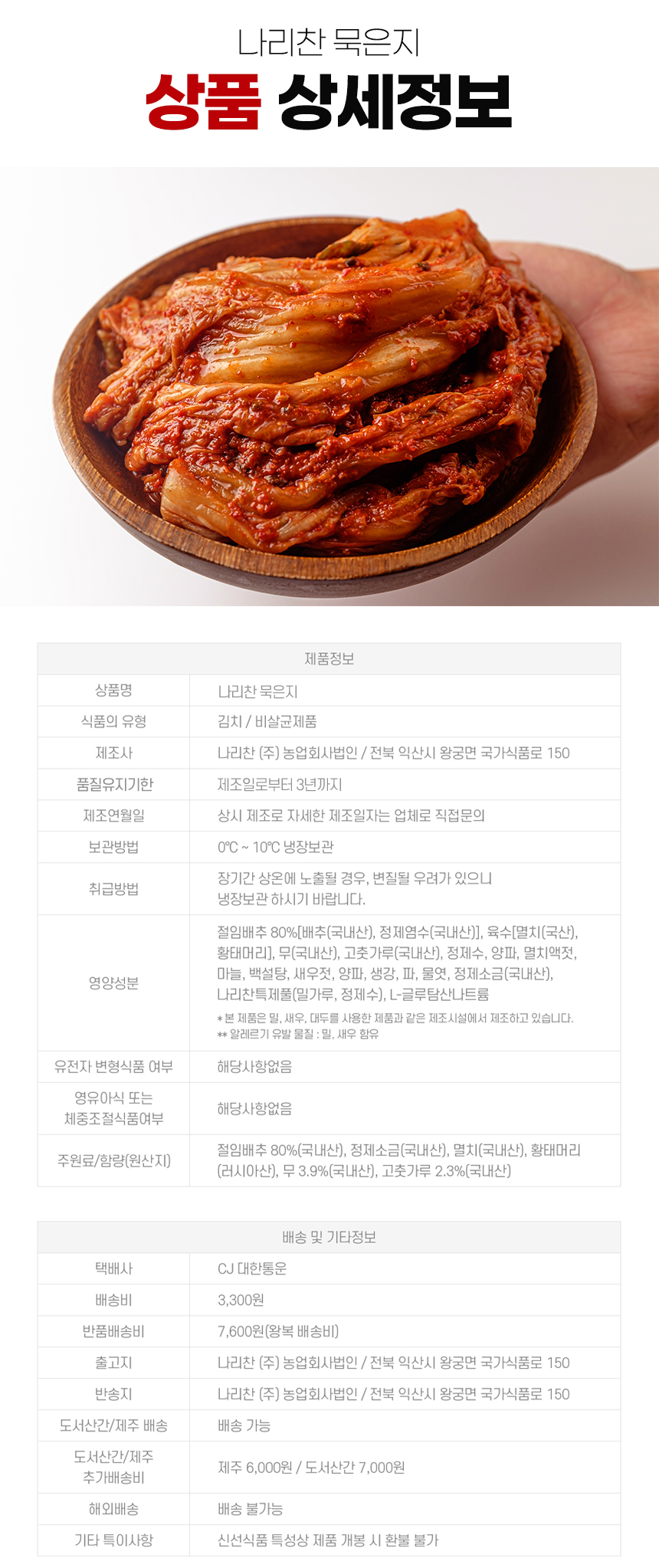 | 상품구성 | 배추김치 |