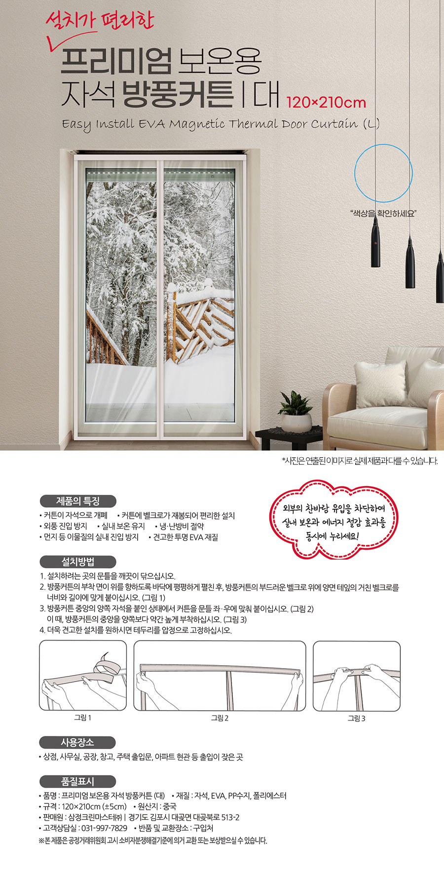 | 품명 및 모델명 | 프리미엄 보온용 자석 방풍커텐(대) |