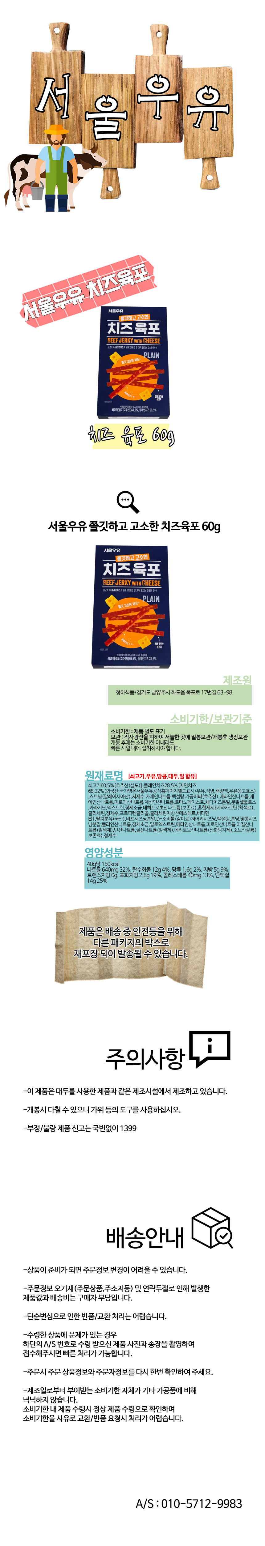 | 포장단위별 내용물의 용량(중량),수량 | 서울우유치즈 치즈 육포 60gx3 |