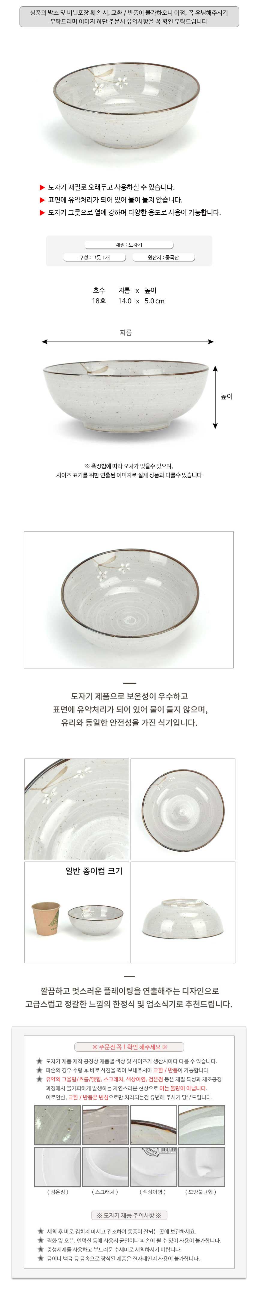 | 품명 및 모델명 | 도자기 한정식 대접 탕그릇 국그릇 14x5cm / 상세정보별도표시 |