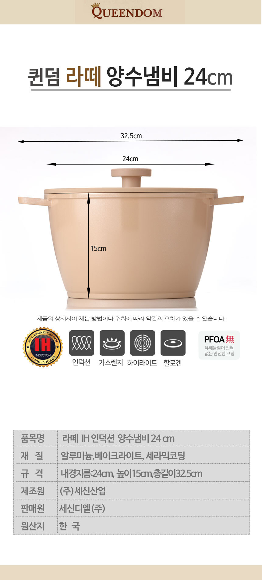 | 품명 및 모델명 | 퀸덤 라떼 세라믹냄비 양수냄비 24cm |