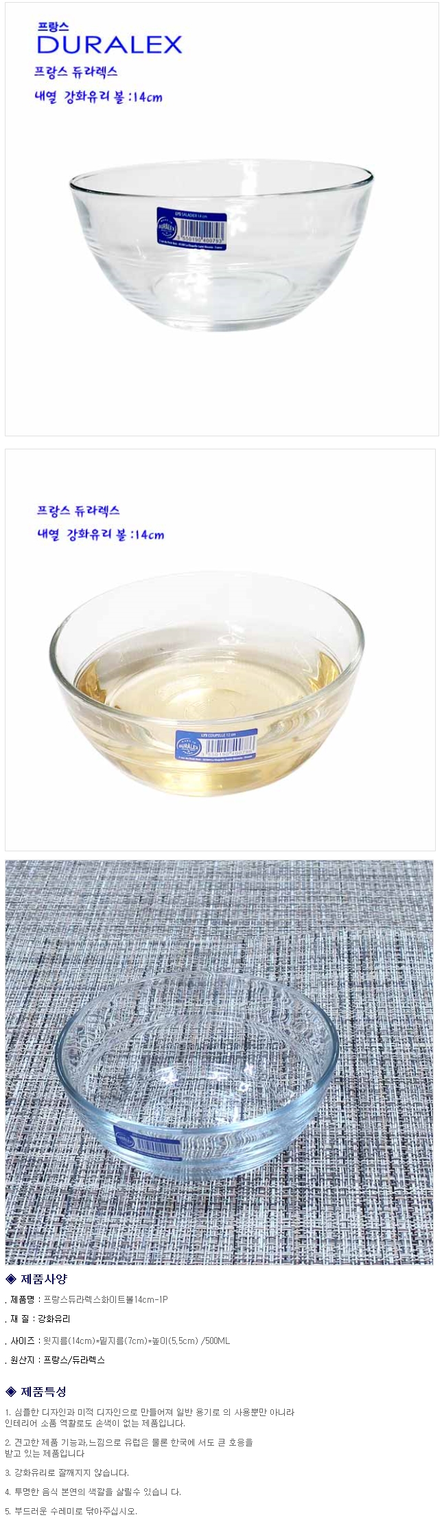 | 상품명:듀라렉스 믹싱볼 유리볼 샐러드볼 용기 그릇 1P 14cm |