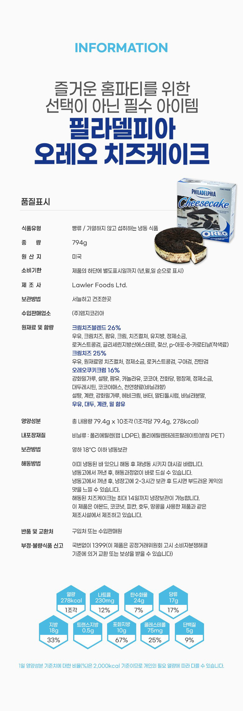 | 품명 | 필라델피아 오레오 치즈케익 |