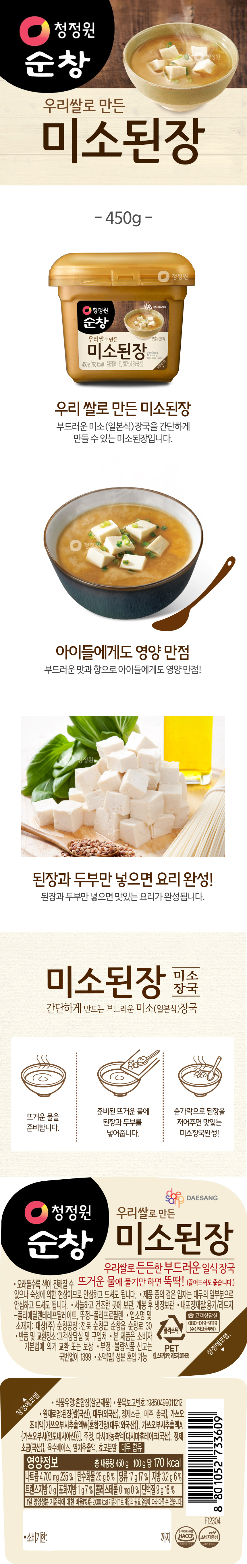 | 품명 | 청정원 미소된장450g(PETG) |