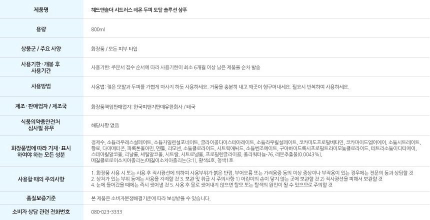 | 품명 및 모델명 | 헤드앤숄더 샴푸/린스 |