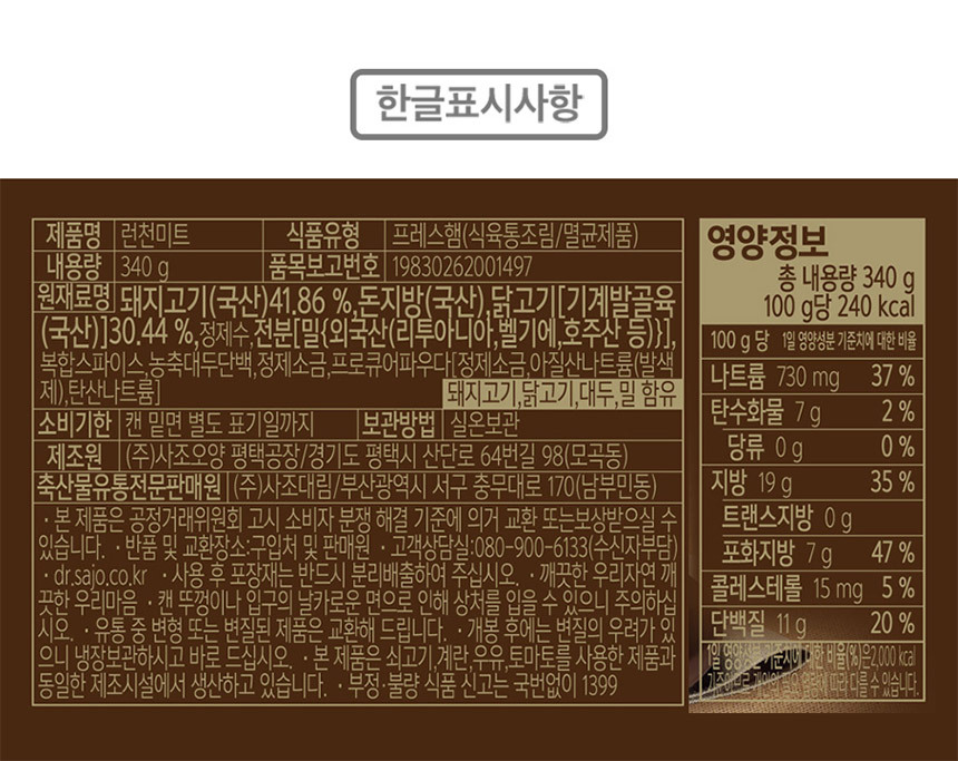 | 영양성분 | 상세설명 참조 |