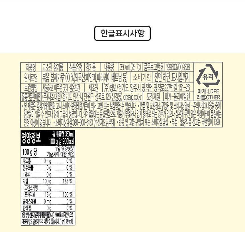 | 유전자변형식품 해당 여부 | 해당사항 없음 |
