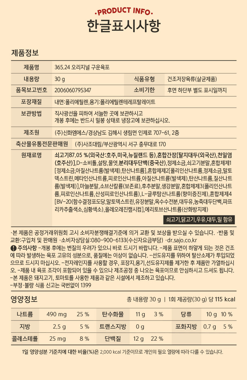 | 영양성분 | 상세설명 참조 |