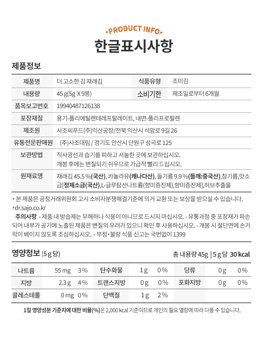 | 영양성분 | 상세설명 참조 |