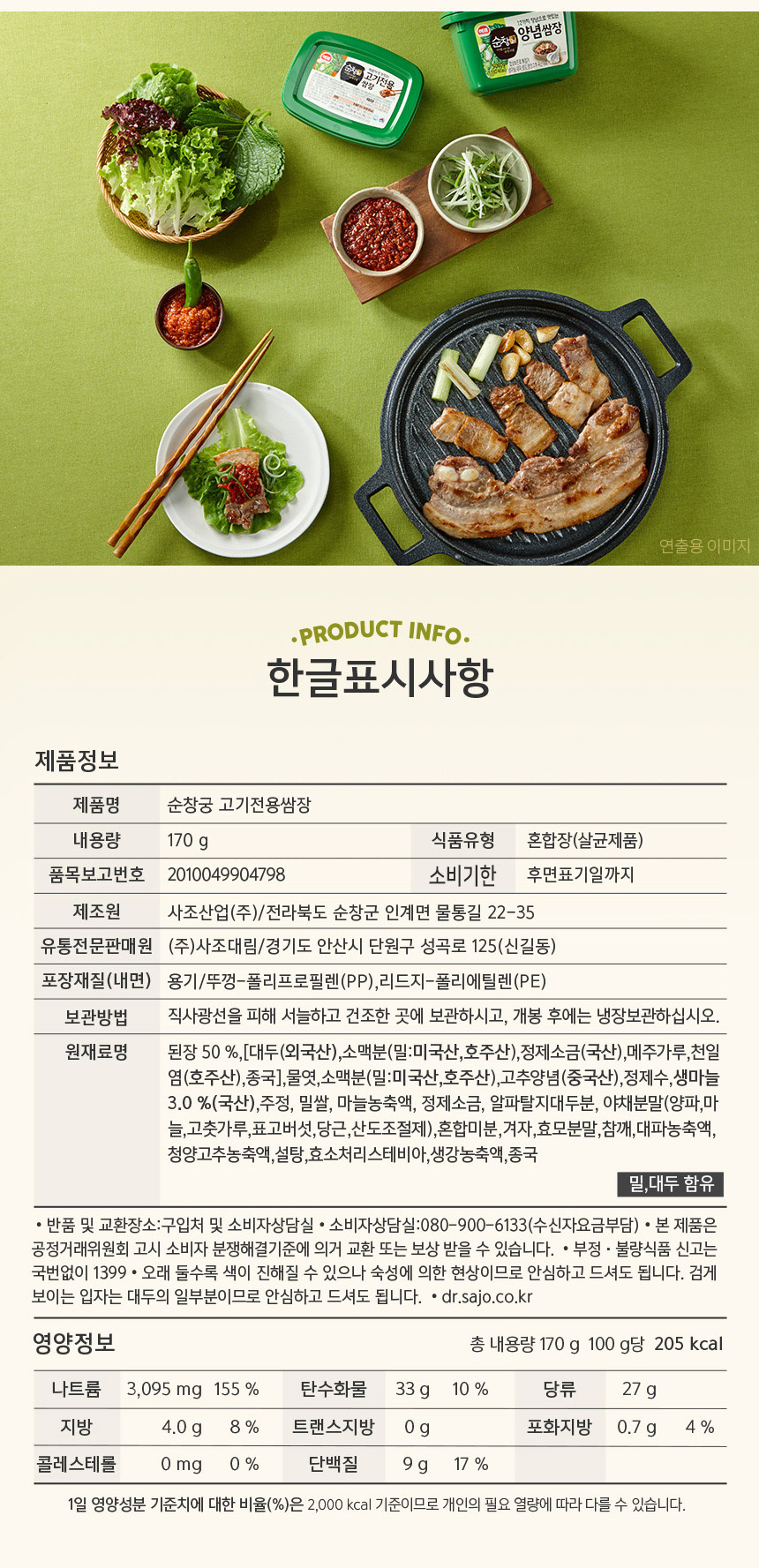 | 원재료 및 함량 | 상세설명 참조 |