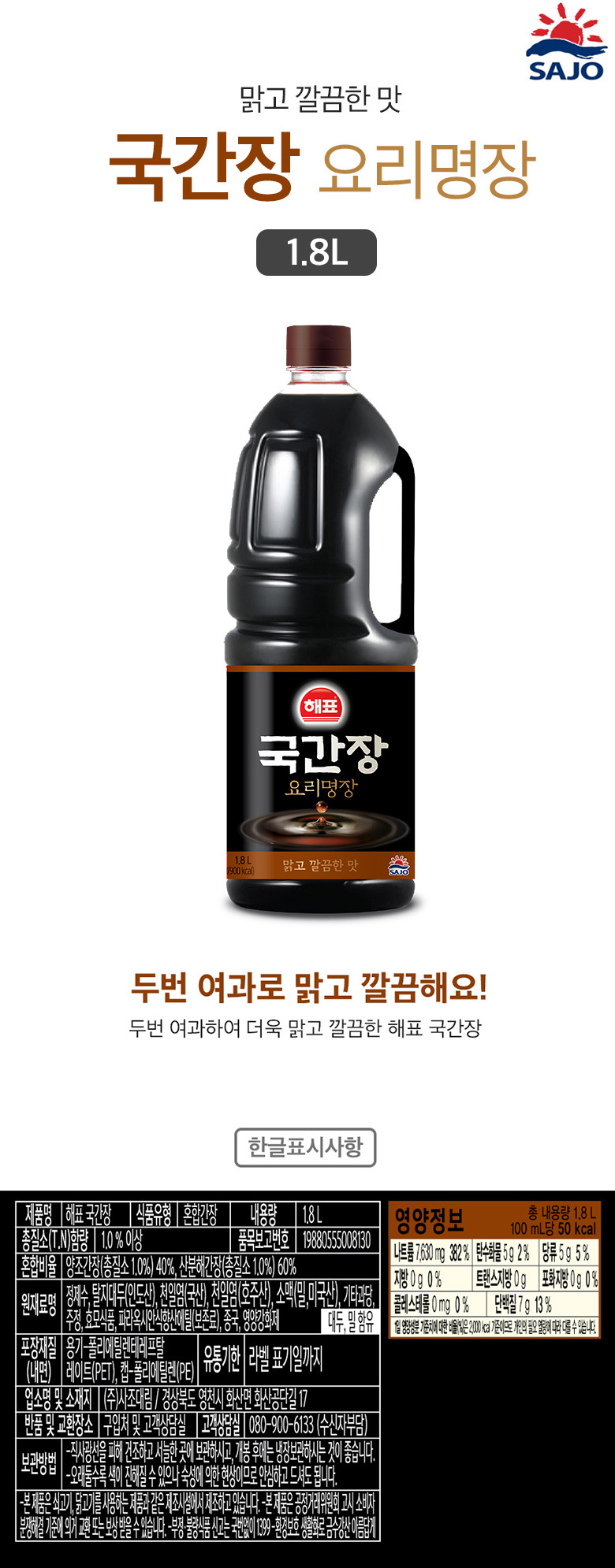 | 품명 | [푸른들마켓][해표] 국간장(요리명장)1.8L |