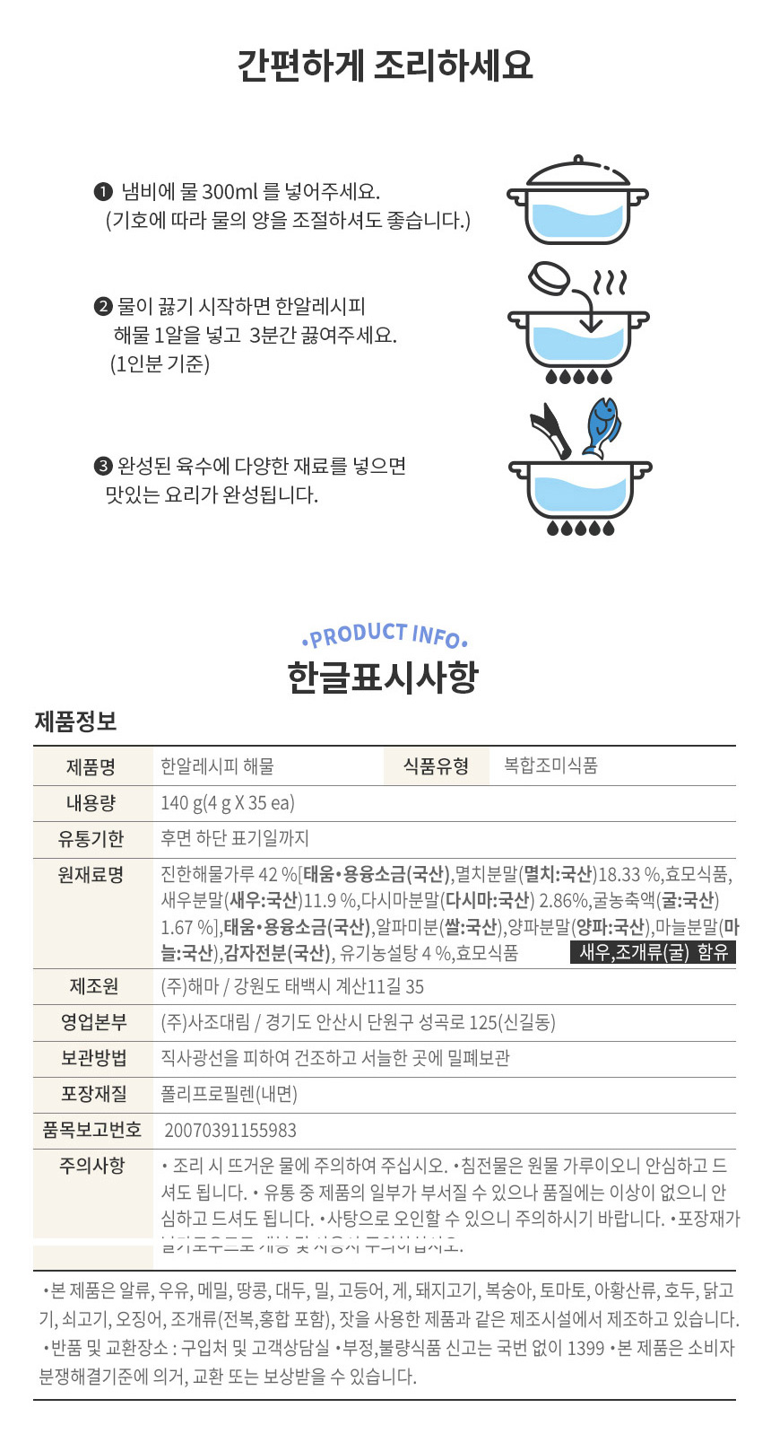 | 원재료 및 함량 | 상세설명 참조 |