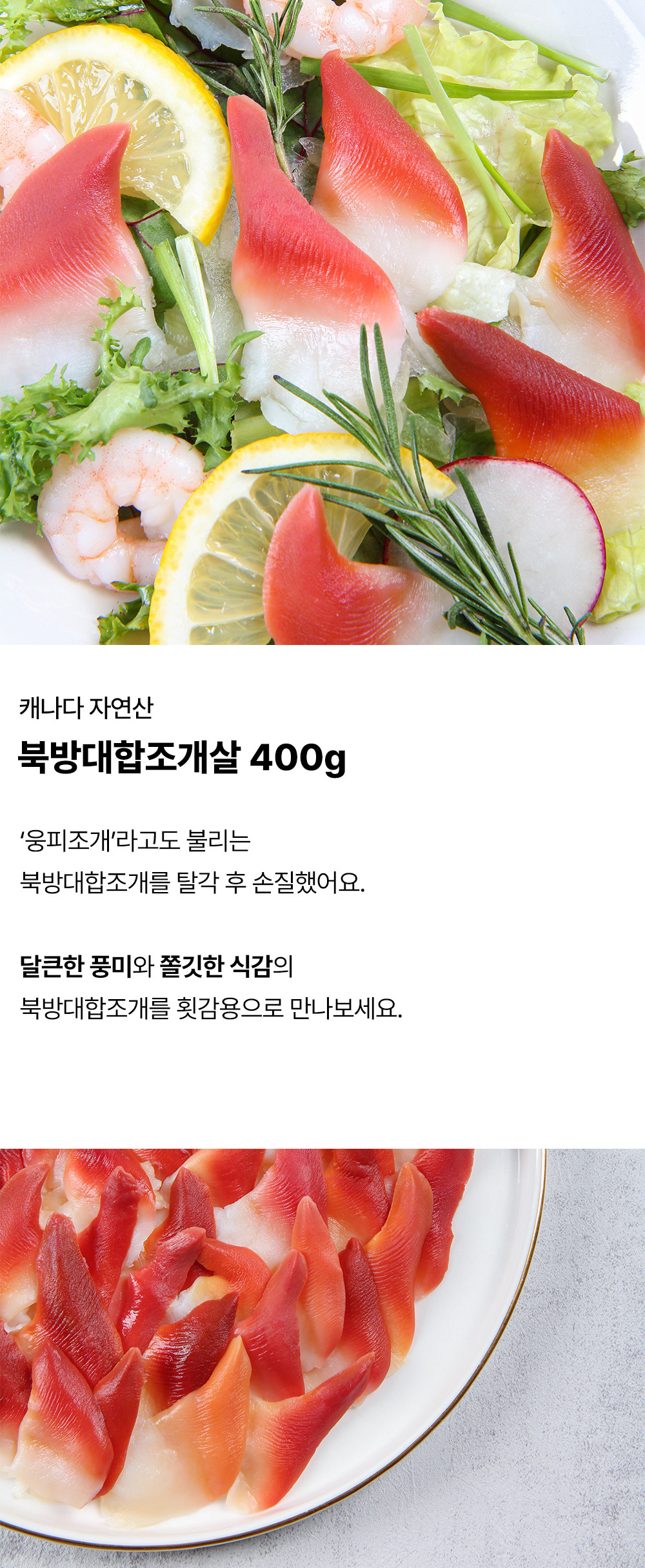 | 품목 또는 명칭 | 북방대합조개살 400g (횟감용) |