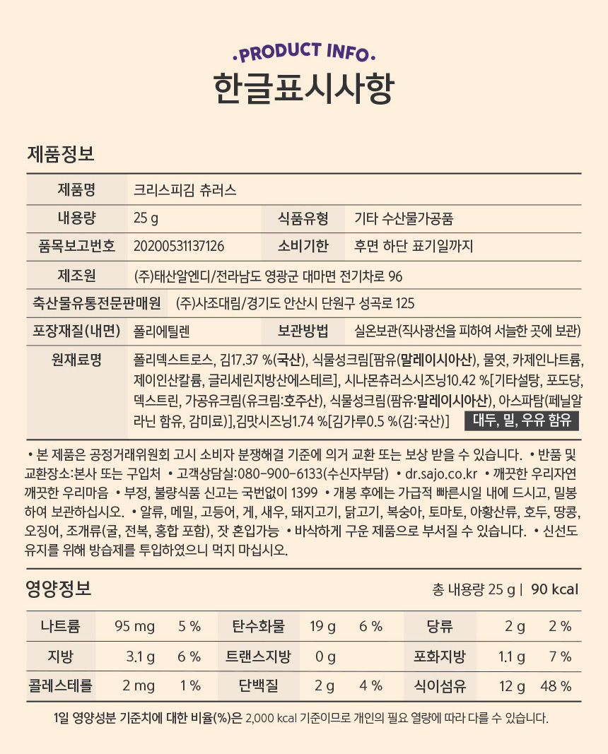 | 영양성분 | 상세설명 참조 |