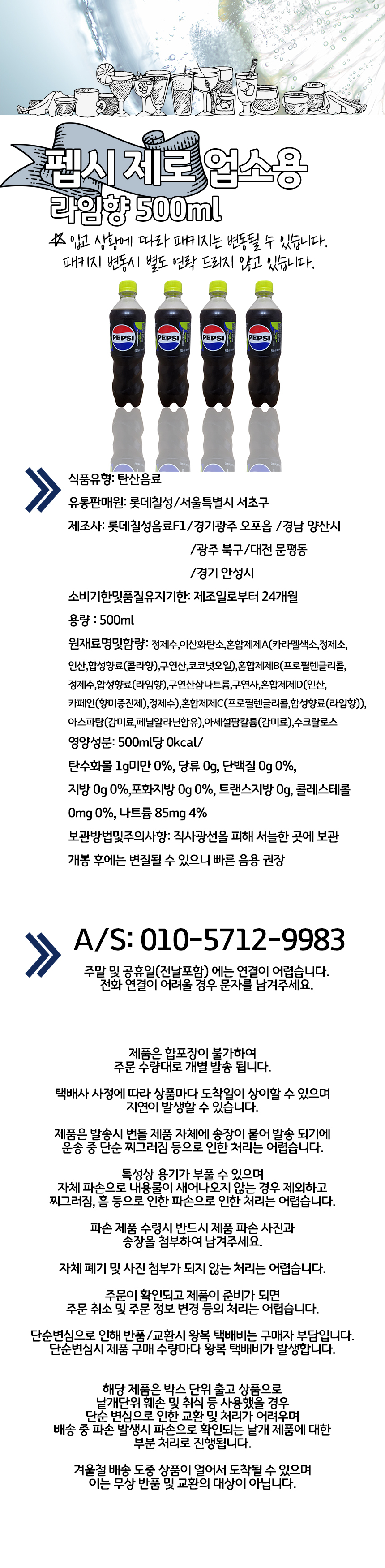 | 포장단위별 내용물의 용량(중량),수량 | 펩시콜라 제로슈거 라임향 500mlx20페트 |