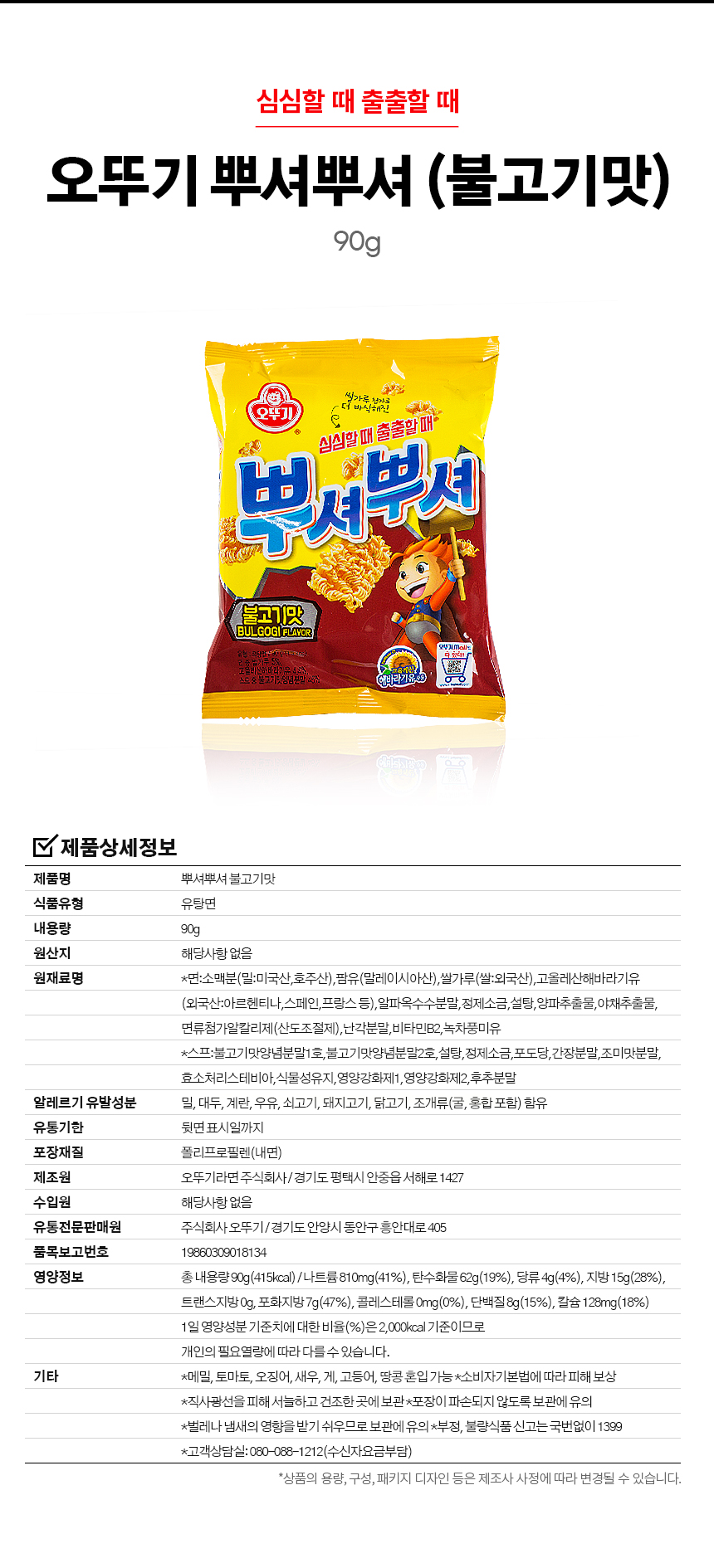 라면과자 뿌셔뿌셔 불고기맛 90g상품상세_동원몰