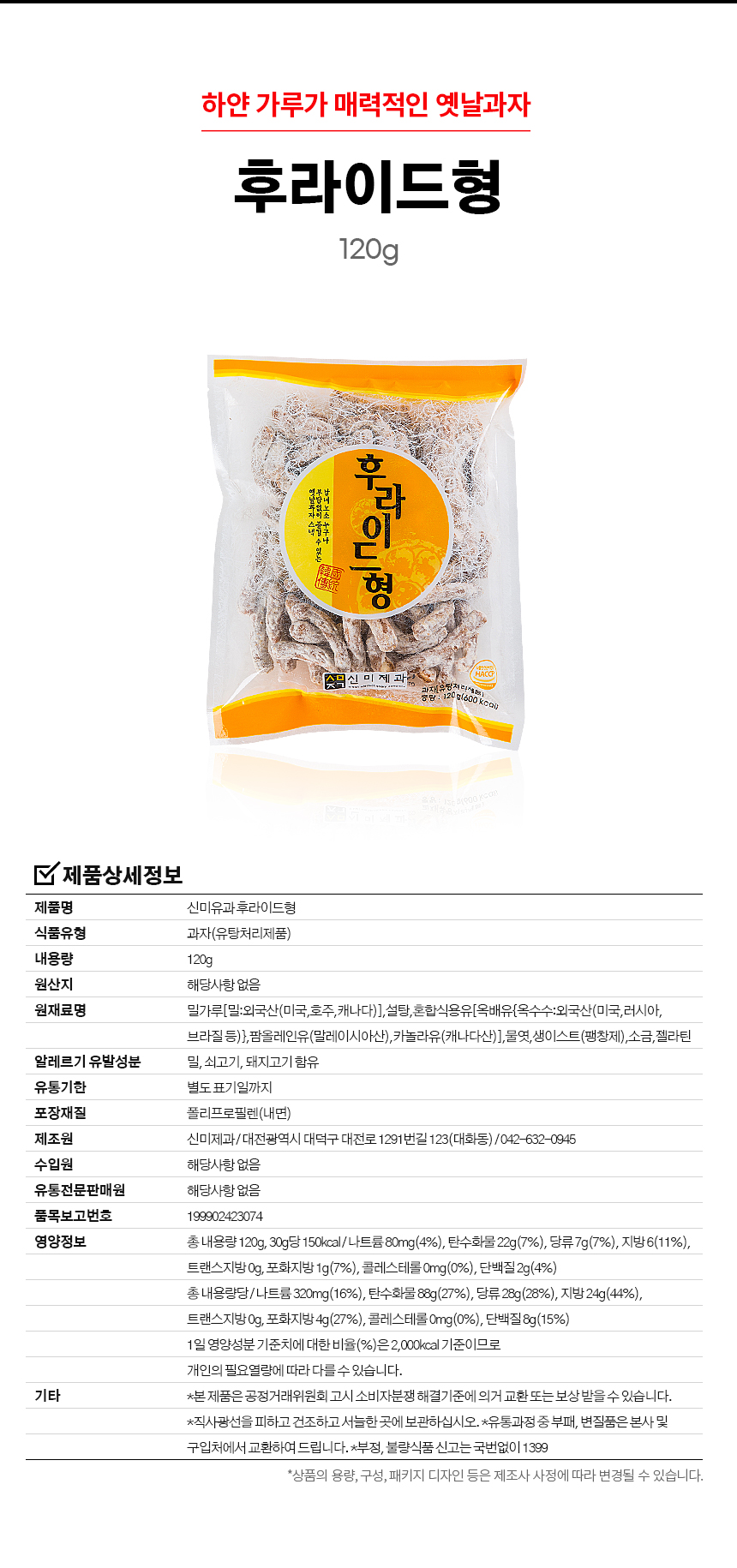 하얀가루 옛날과자 후라이드형 120g상품상세_동원몰