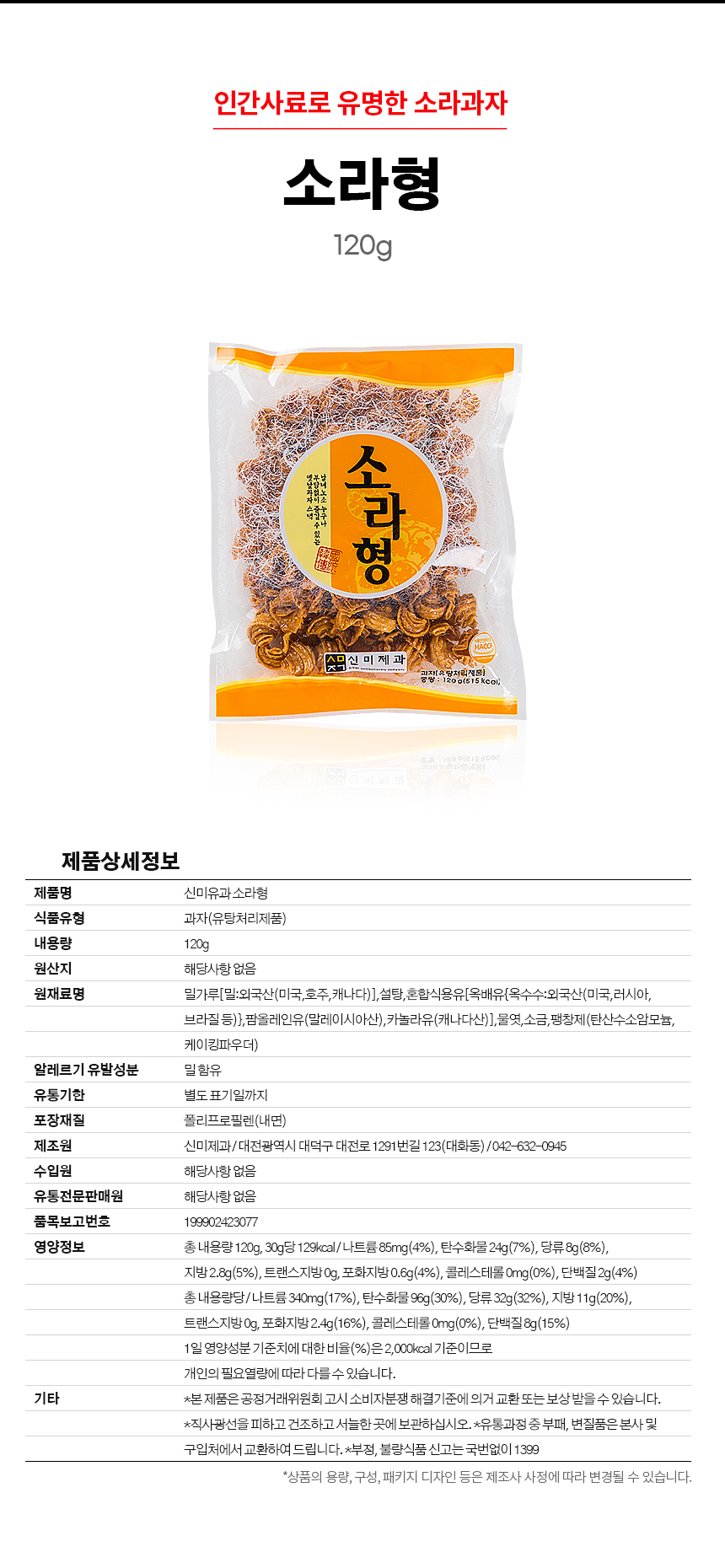 옛날 주전부리 소라형 소라과자 120g상품상세_동원몰