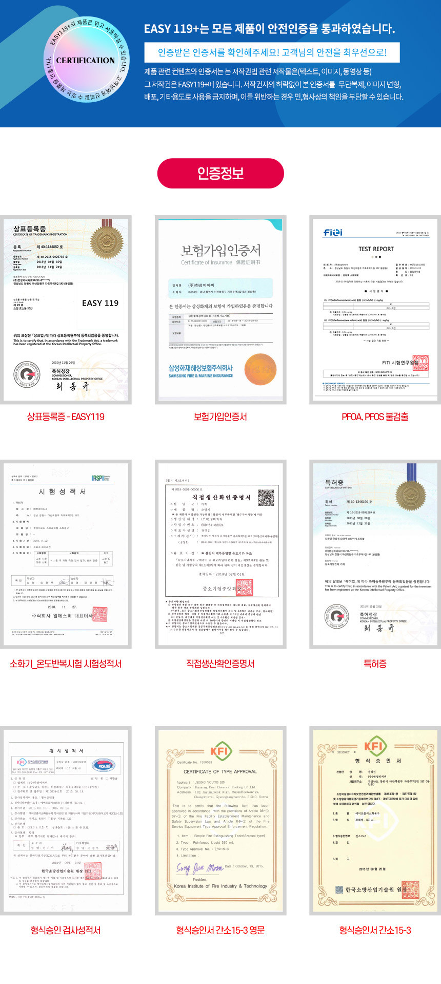 | 구성품 | 이지119 소화기 플러스 911 소화기강화액 식당용 1개 |