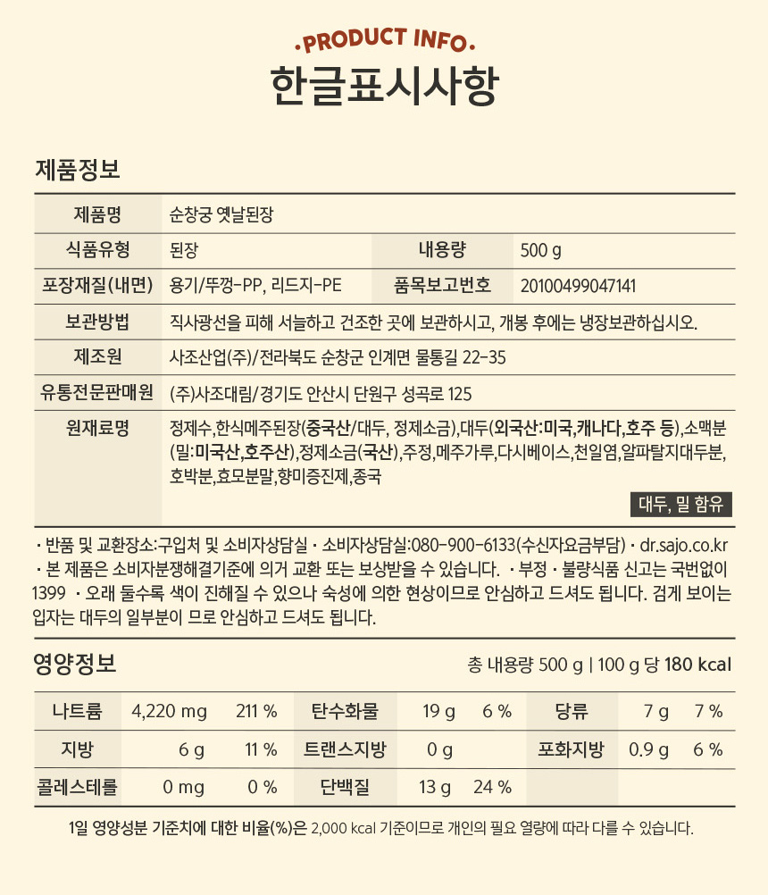 | 영양성분 | 상세설명 참조 |
