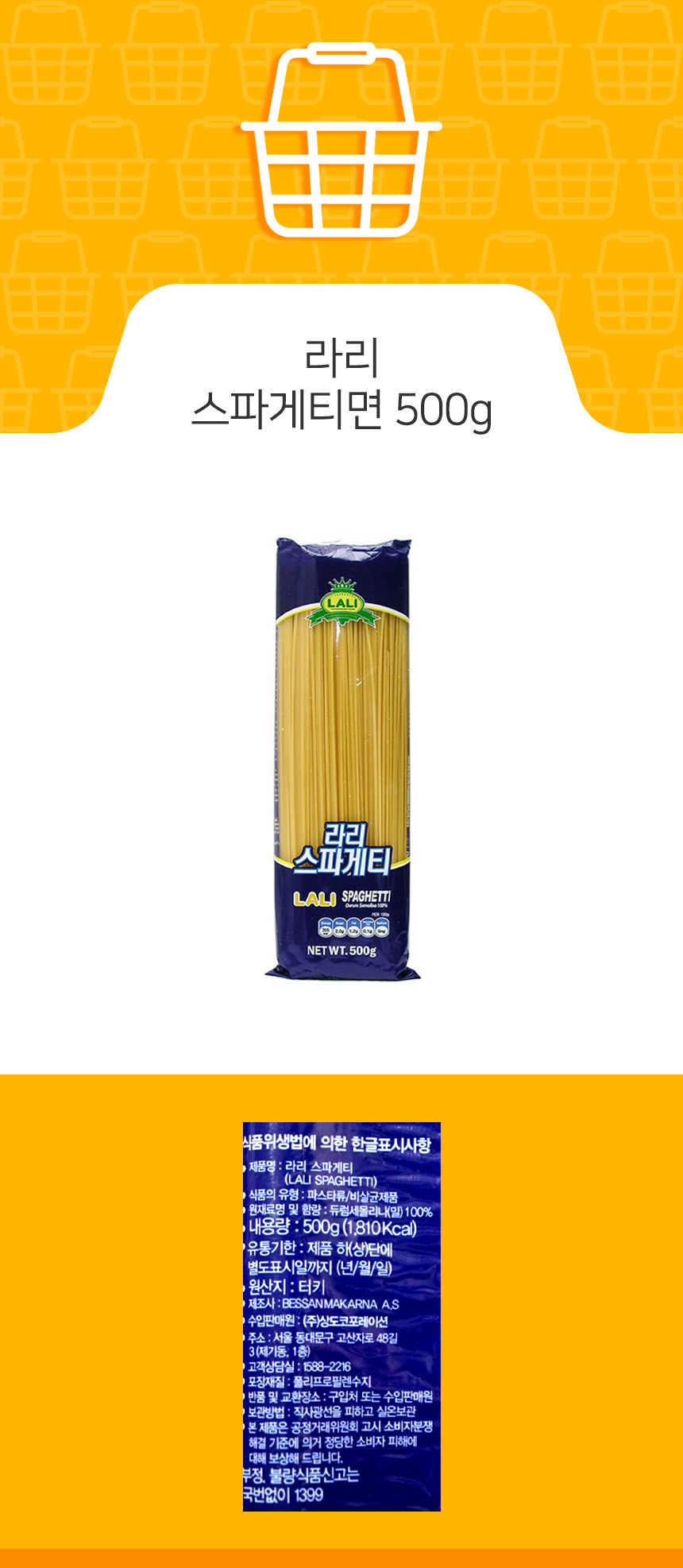 식자재 아울렛 라리 스파게티면 500g상품상세_동원몰