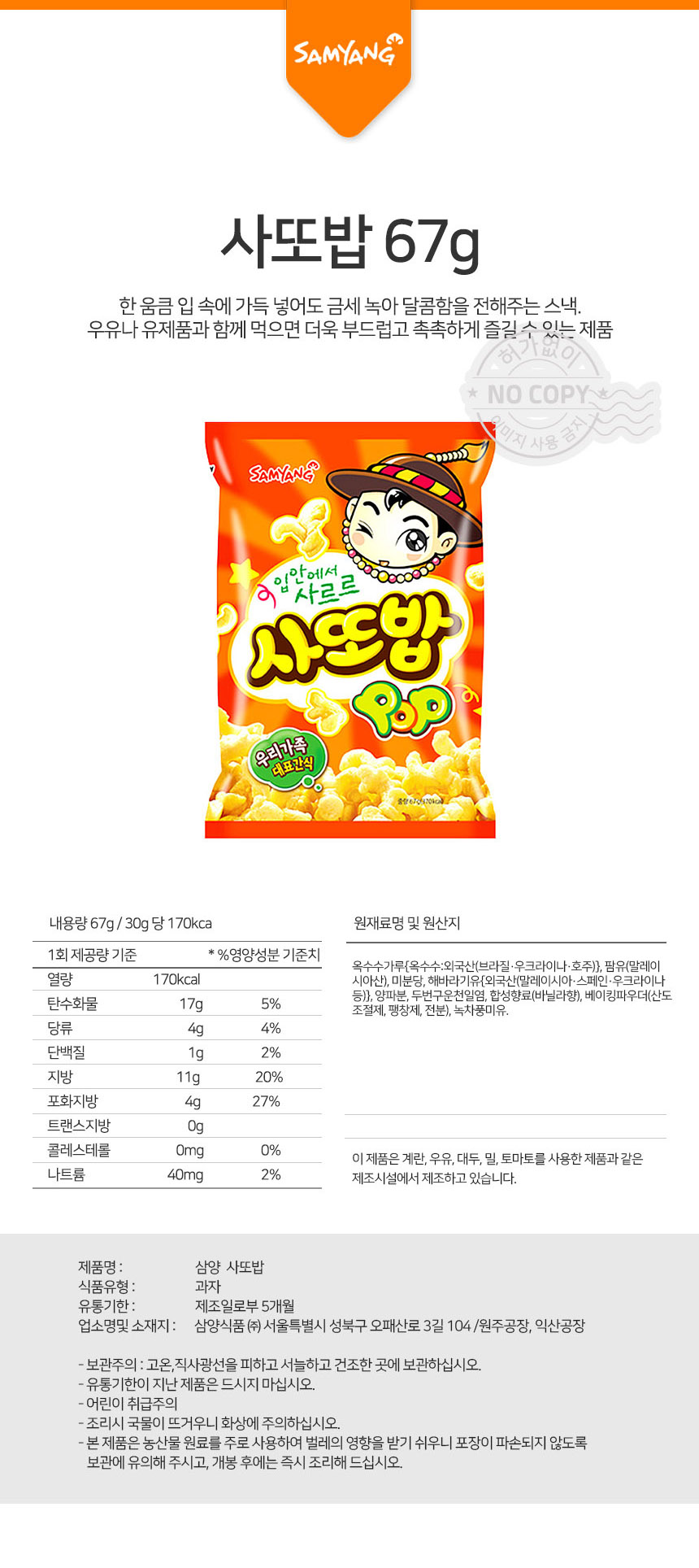바삭과자 간식타임 삼양 사또밥 67g상품상세_동원몰