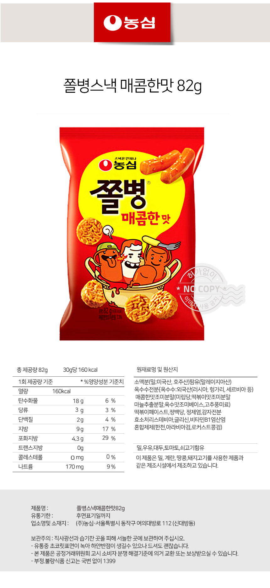 바삭과자 간식타임 농심 쫄병스낵매콤한맛 82g상품상세_동원몰