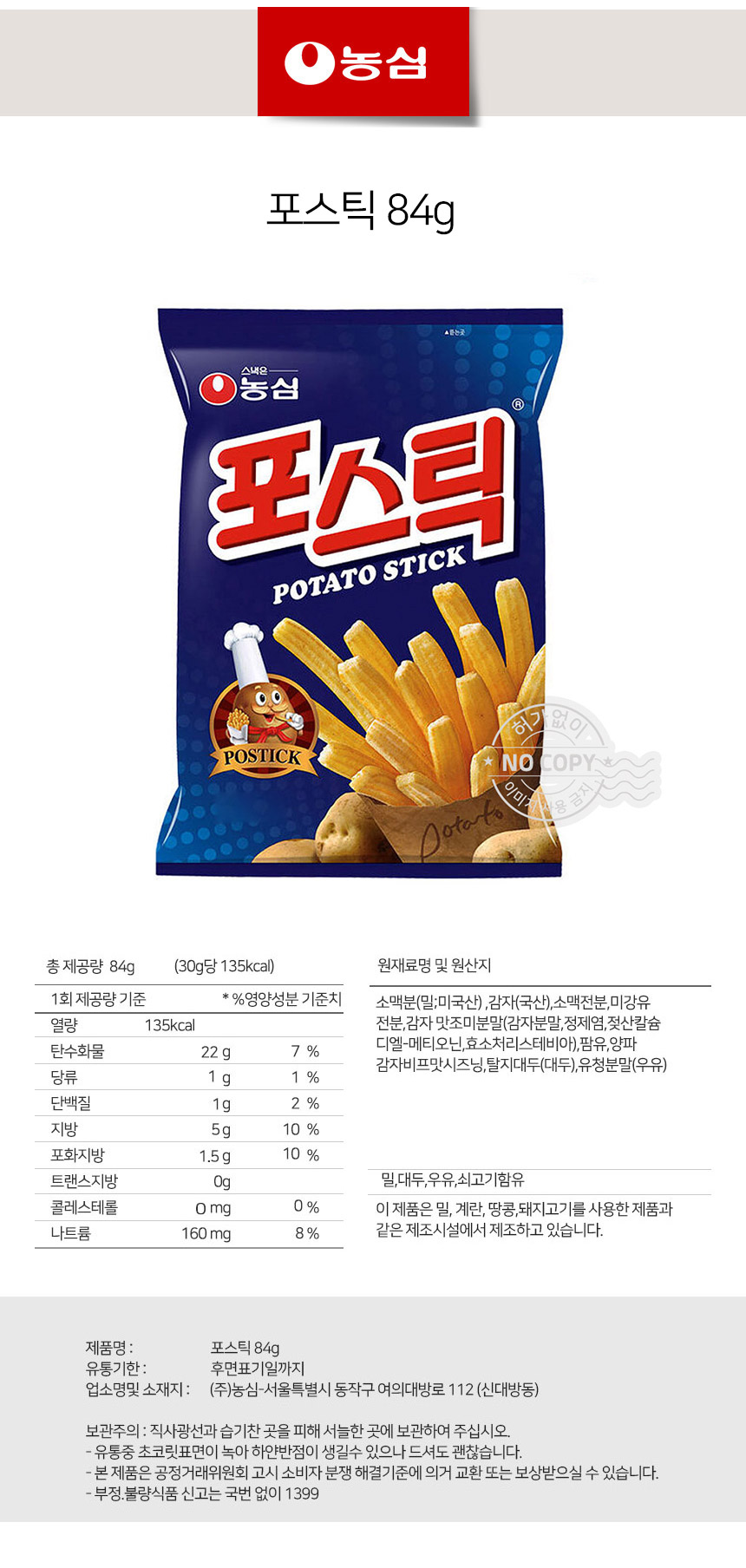 바삭과자 간식타임 농심 포스틱 84g상품상세_동원몰